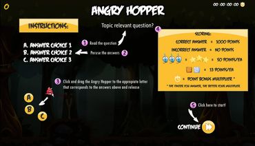 Tired of kangaroos yet? Another e-learning game was developed as well, this time playing off of Angry Birds back when it was in its heyday. I provided custom graphics and overall creative direction to the coding and instructional designer teams.